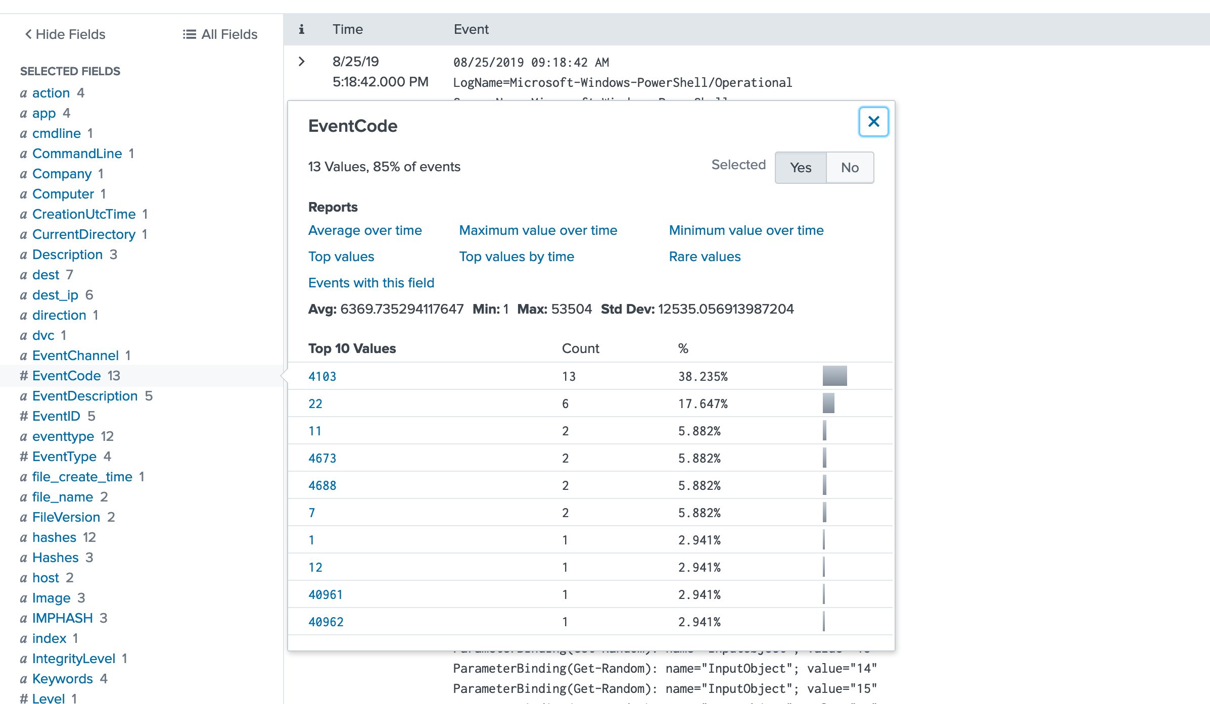 word,sourcetype,EventCode,process_idand how to look forInteresting Fields. - Windows Process Execution events (Event ID
